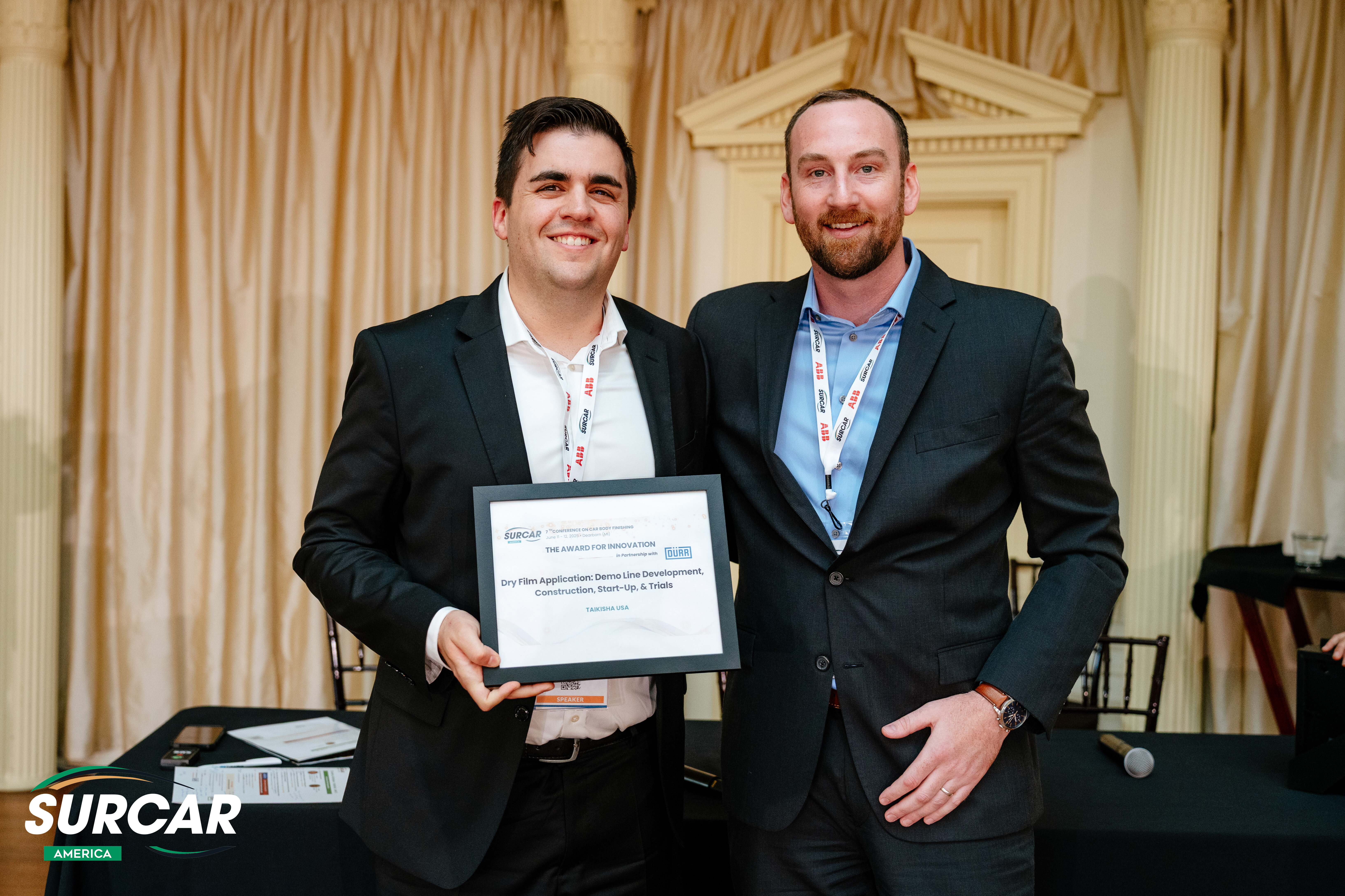 株式会社大気社(本社:東京都新宿区、代表取締役社長:長田 雅士、以下、当社)のグループ企業であるTaikisha USA, Inc.(本社:アメリカ・ミシガン州トロイ、President: Robert Booth III)は、2025年6月11日~12日にアメリカ・ミシガン州で開催された、自動車塗装技術の国際会議「SURCAR」に登壇し、「Award for Innovation」を受賞しました。会議においては、Taikisha USA, Inc.のJoel Campbellが、ドライ加飾システムのデモライン開発についてプレゼンテーションを行いました。
