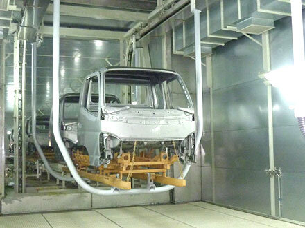 涂装工厂的输送系统是贯穿整个生产流程的自动化输送系统,负责从焊接车间接收车身,经涂装工序后将车身输送至装配车间。本公司可应对多种输送系统,涵盖日本传统采用的吊架式/台车式输送系统,以及欧洲主流的滑轨式输送系统。此外,除车身外,本系统同样适用于树脂部件的涂装作业。