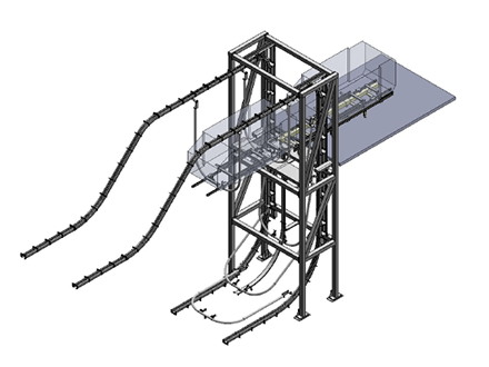 适用于前处理及电泳工位的滑轨式悬挂输送机。