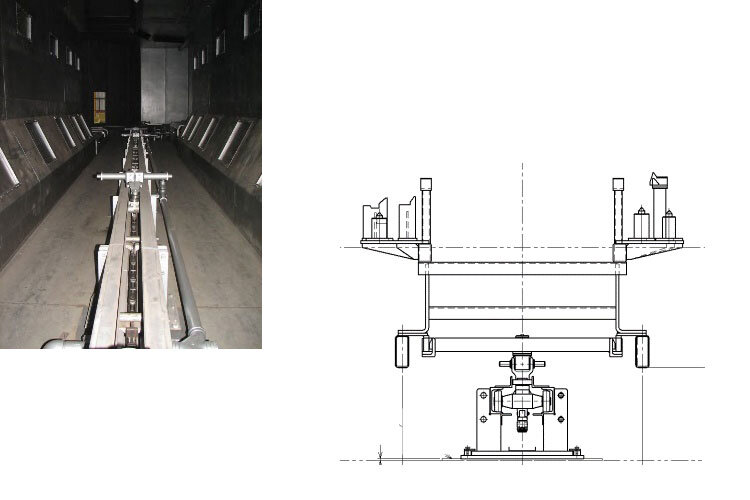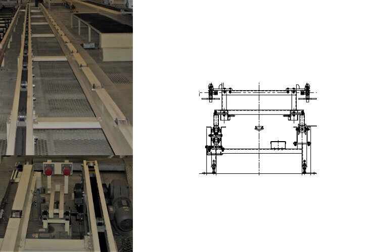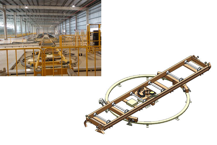 Floor conveyor is used in the top coating. There are 2 types of conveyors. One is mono-track conveyors using dollies with chains and friction, with mono-track conveyors using dollies with chains and friction, The other is friction-type conveyors using skids that include roller beds. They can adapt to various layouts. They can adapt to various layouts.