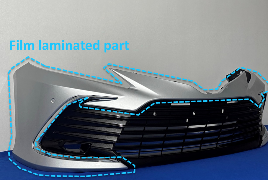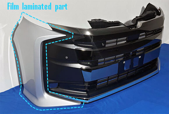 日本ペイント・オートモーティブコーティングスのシルバーメタリックフィルムをバンパーに加飾しています。