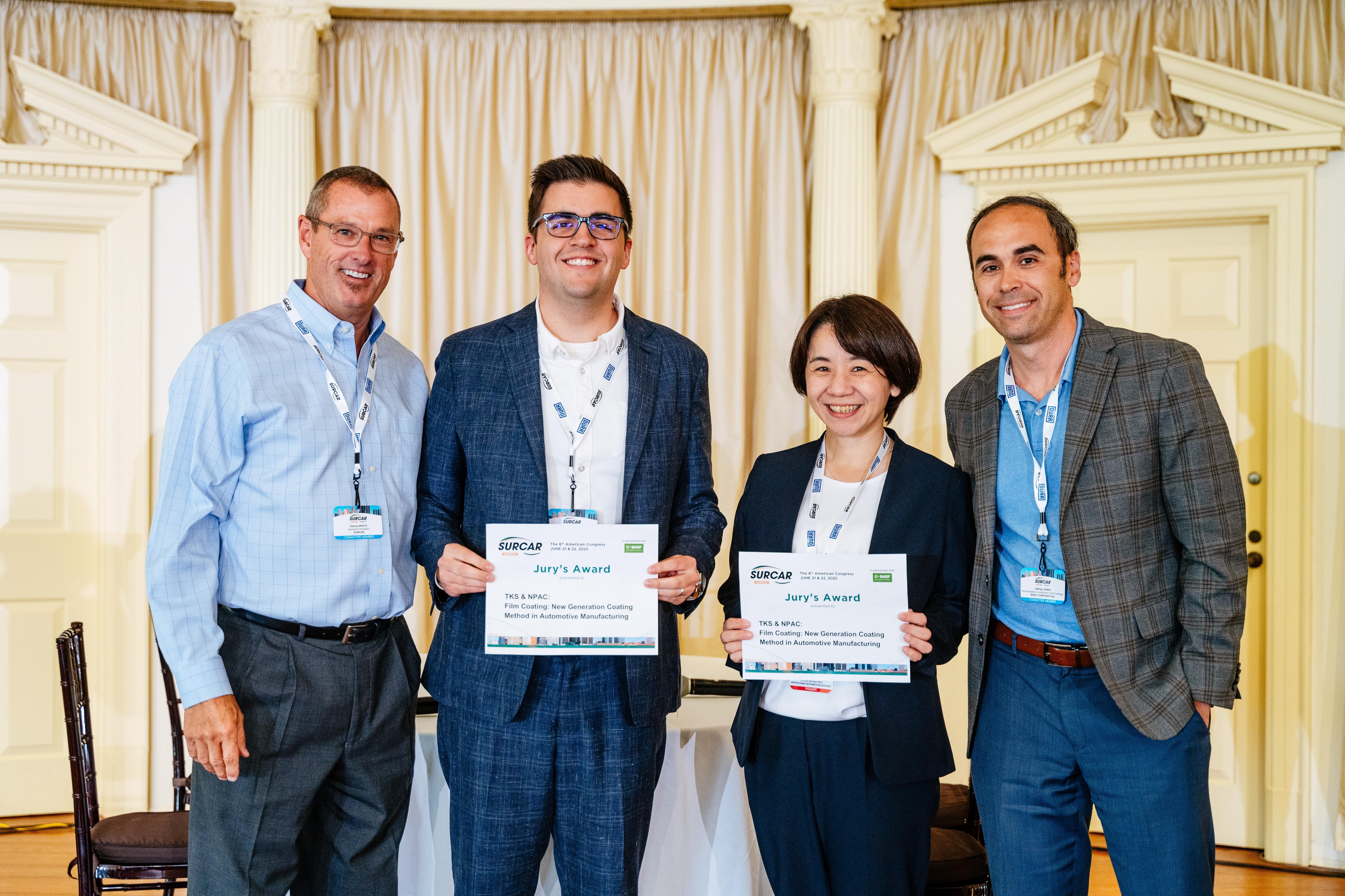 株式会社大気社(本社:東京都新宿区、代表取締役社長:長田 雅士)のグループ企業であるTKS Industrial Company(本社:アメリカミシガン州トロイ、PRESIDENT:Robert Booth III)は、2023年6月21日~22日デトロイトにて開催された、塗装業界で最も権威のある国際カンファレンス、自動車塗装技術国際会議「第6回SURCAR 2023 in Detroit」にて、日本ペイント・オートモーティブコーティングス株式会社(本社:大阪府枚方市、代表取締役社長:西村 智志)と共同で「ドライ加飾技術:自動車製造における新世代コーティングメソッド(Dry Film Coating:New Generation Coating Method in Automotive Manufacturing)」を発表し、審査員投票で最も評価された発表に贈られるJury's Awardを受賞しました。発表は、日本ペイント・オートモーティブコーティングス株式会社の岩越あや子氏とTKS Industrial CompanyのJoel Campbellが行いました。