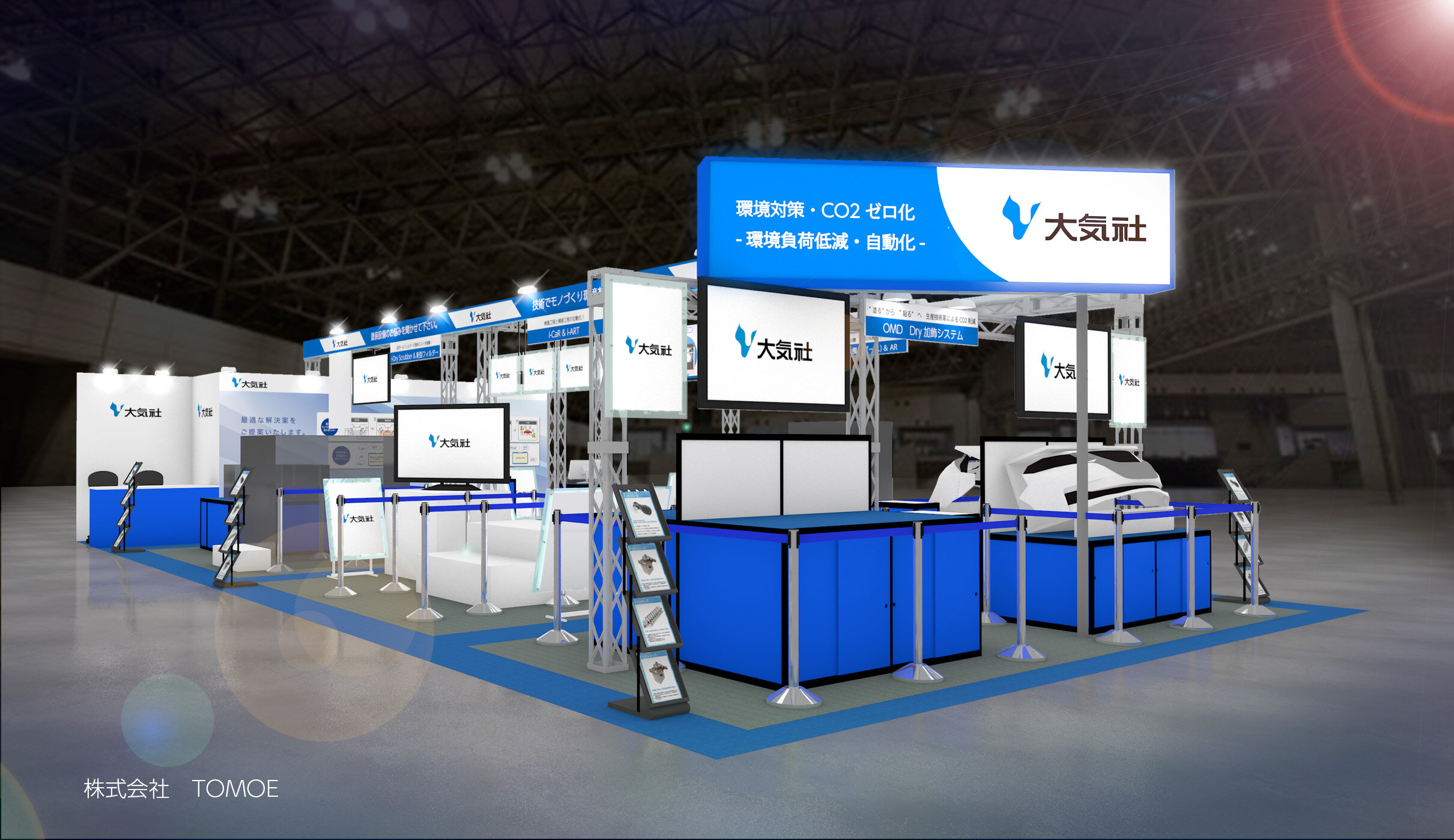「技術でモノづくり環境を塗り替える!」をテーマに、お客さまが抱える塗装現場のお困りごとを伺い、課題解決に向けたソリューションを提供する展示となっています。
