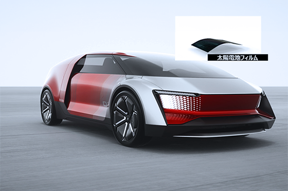また、フィルム特有の意匠性(模様・柄・照光)・機能性(太陽電池・遮熱)により、従来の塗装ではできなかった表現が可能となることも大きな特長のひとつです。