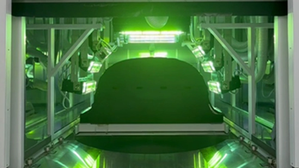 ドライ加飾システムは、バンパーのような大きな立体形状の外装部品にも連続ラインでフィルムを貼り付けることができ、樹脂や鋼板の製品にも対応できます。